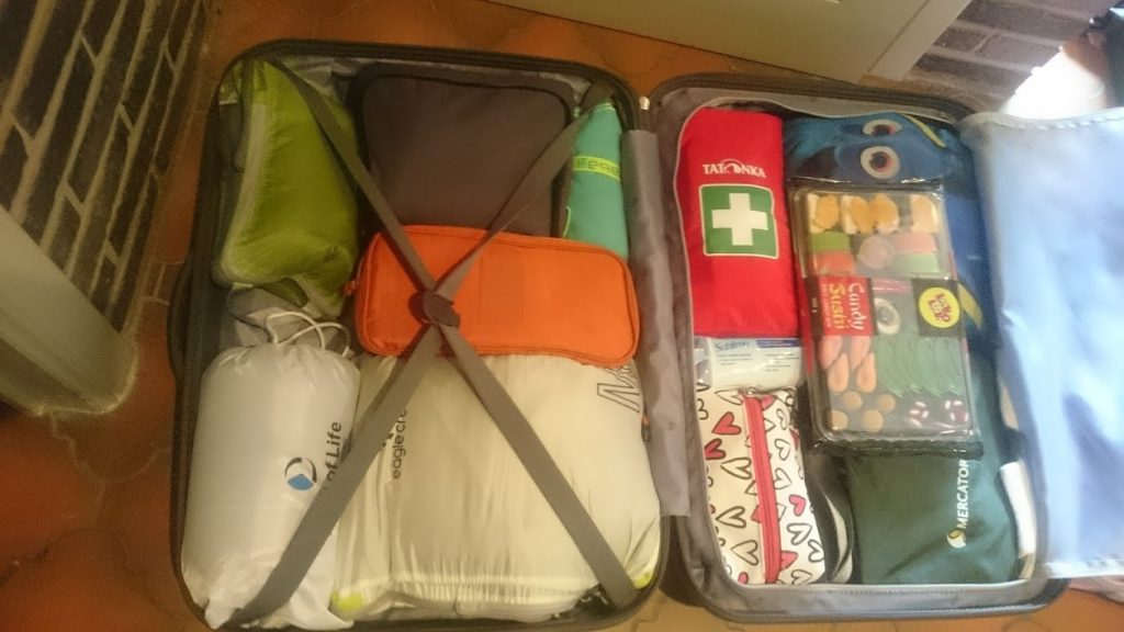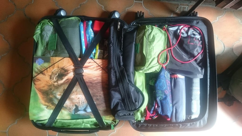 We ‘mogen’ gerust heel wat meenemen. Ik denk dat de meeste vliegtuigmaatschappijen 20 kg per persoon toelaten. Maar je moet het nog kunnen dragen ook. Wij kozen ervoor om het iets compacter te doen. Al enkele maanden zijn we bezig met het uitzoeken van lichte materialen die wel tegen een stootje kunnen. We nemen ongeveer hetzelfde mee als moest je voor een week op vakantie gaan (of misschien nog minder dan de meeste mensen die een week op vakantie gaan). En natuurlijk ook wasmiddel zodat we regelmatig onze kleren kunnen wassen! We maakten gebruik van veel packing cubes, om zo onze bagage overzichtelijk te houden.