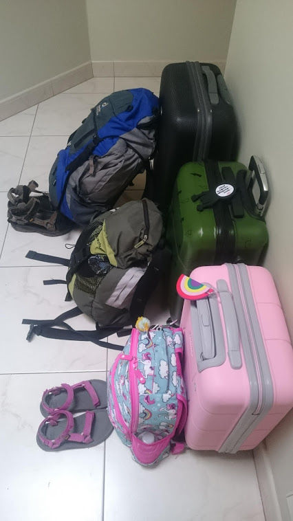 Onze koffers. Die van Bernie staat er nog niet bij.
