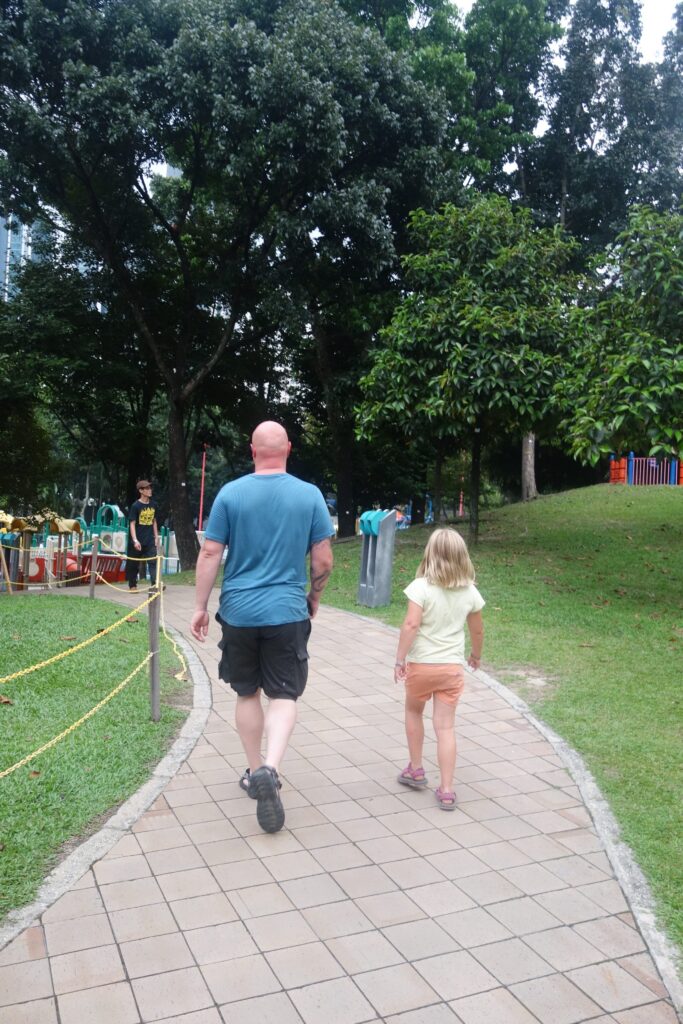 Daarnaast is KL een heel groene stad. In bijna elke straat vind je bomen terug, maar er is ook altijd wel ergens een park in de buurt. Het KLCC park had bijvoorbeeld een mégagrote speeltuin (echt wel mégagroot). Er was ook een gratis zwembad en rondom dat alles een looppiste (en ondanks de hitte, zag je daar altijd mensen joggen). Dat allemaal tussen de wolkenkrabbers in. Fantastisch vind ik dat!