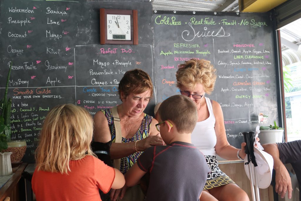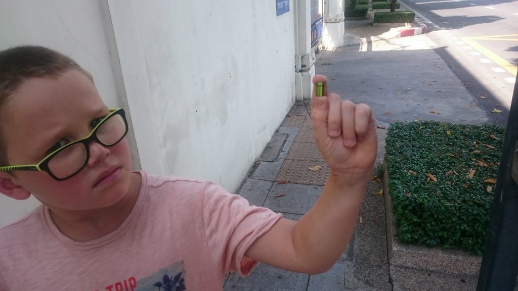 We bezoeken de belangrijkste bezienswaardigheden in Bangkok: het paleis, China Town, Khao San Road, … Oma, opa, mamie en Tika gaan naar de floating market en Maeklon trein markt terwijl Kiran en ik gaan geo-cachen en de grootouders doen nog meer aan cultuur en gaan per fiets de tempels in Ayuthaya bezoeken terwijl Bernie en ik met de kids richting cinema trekken.
