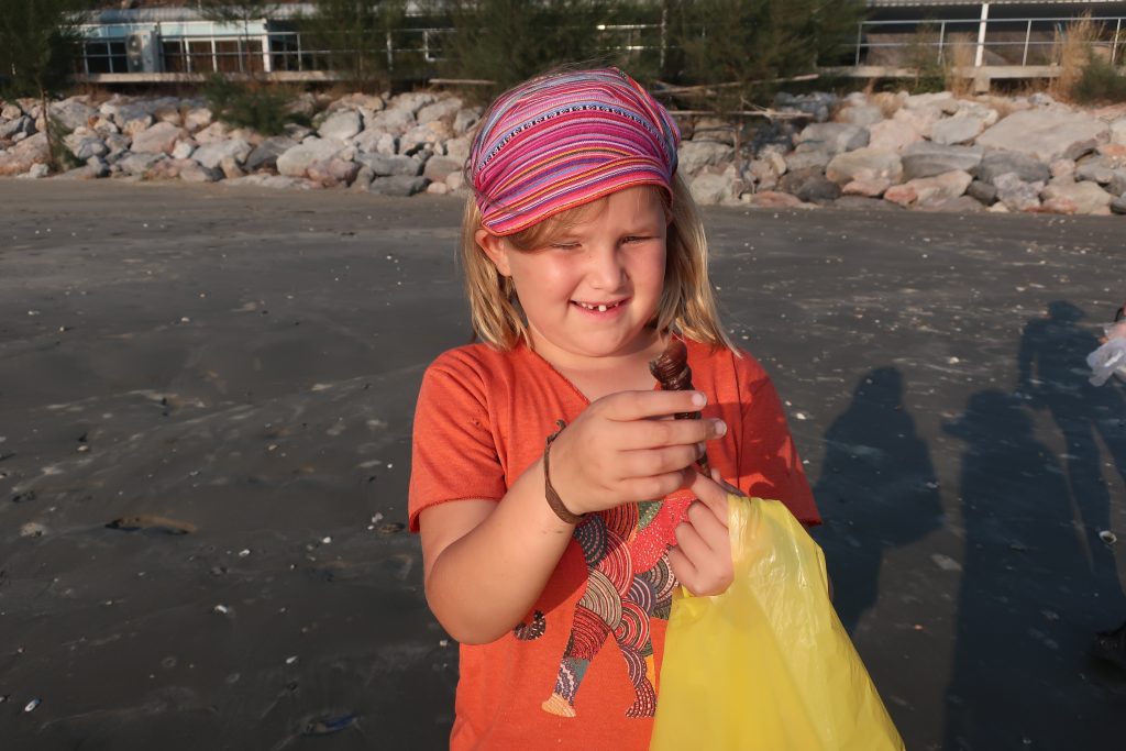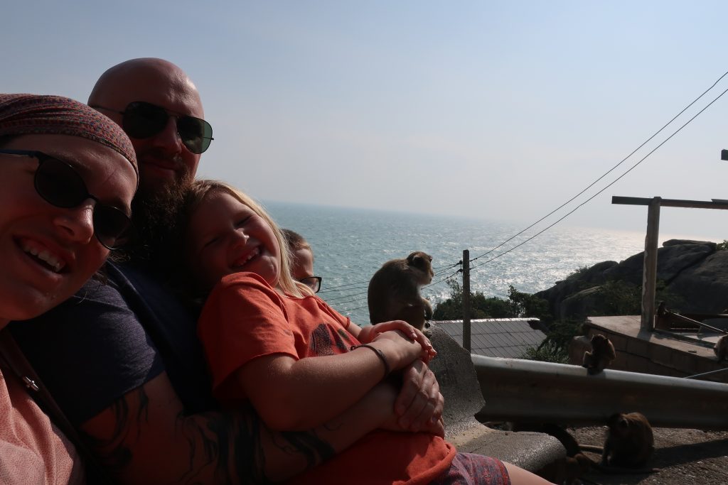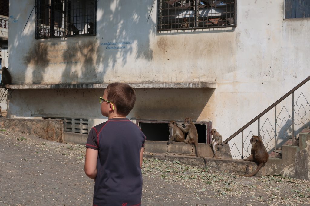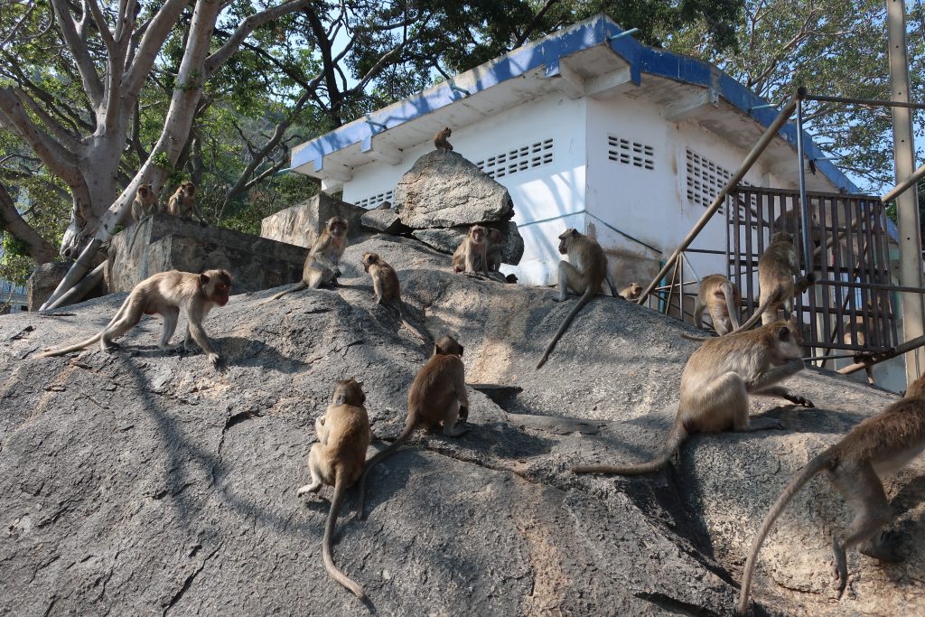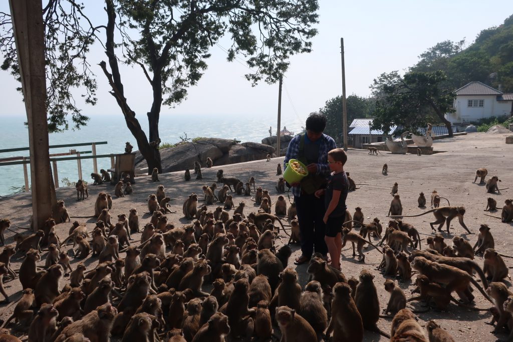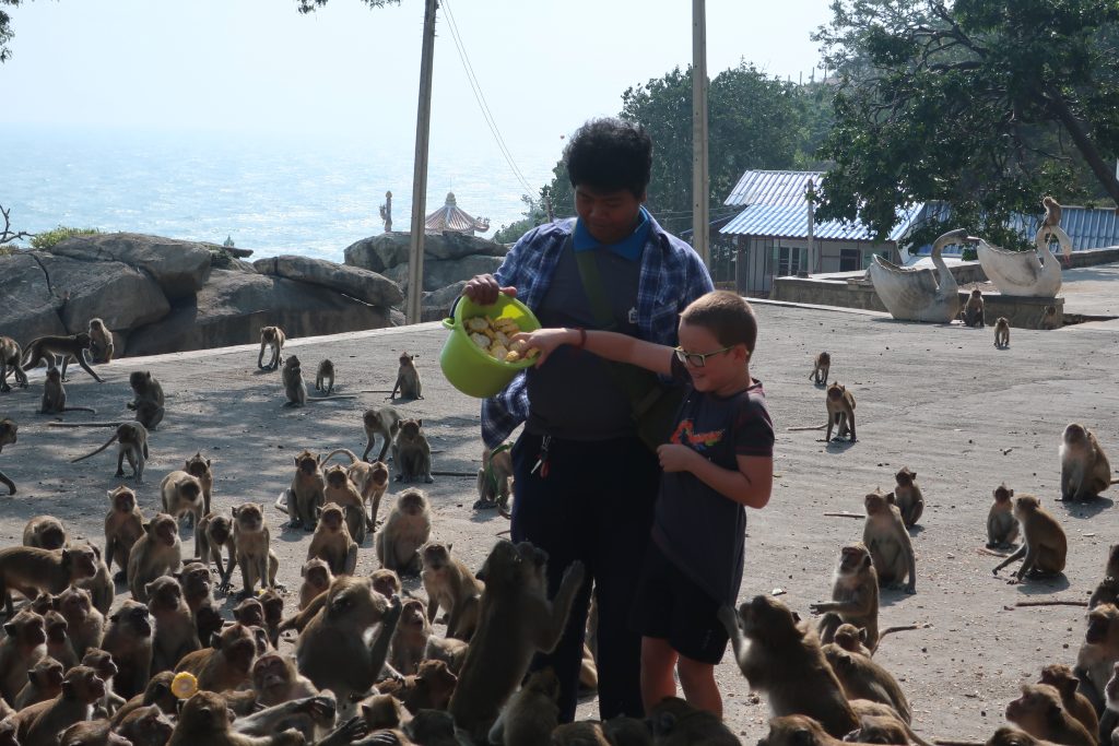 Daarna trekken we met z’n allen richting kust, om nog enkele dagen uit te waaien. We verblijven in een groot huis vlak bij het strand. Airco hebben we niet nodig, want er waait een fris windje. Naast de vele strandwandelingen, schelpjes zoeken en genieten van strandbars bezoeken we ook de vismarkt en de apentempel. De tempel staat op de top van een hoge rots vanwaar we een prachtig uitzicht hebben en het krioelt er van de apen. Ze verkopen ook eten dat je aan de aapjes mag geven. Daar kunnen we natuurlijk niet aan weerstaan! Kijk maar op de foto’s hoe Kiran geniet!