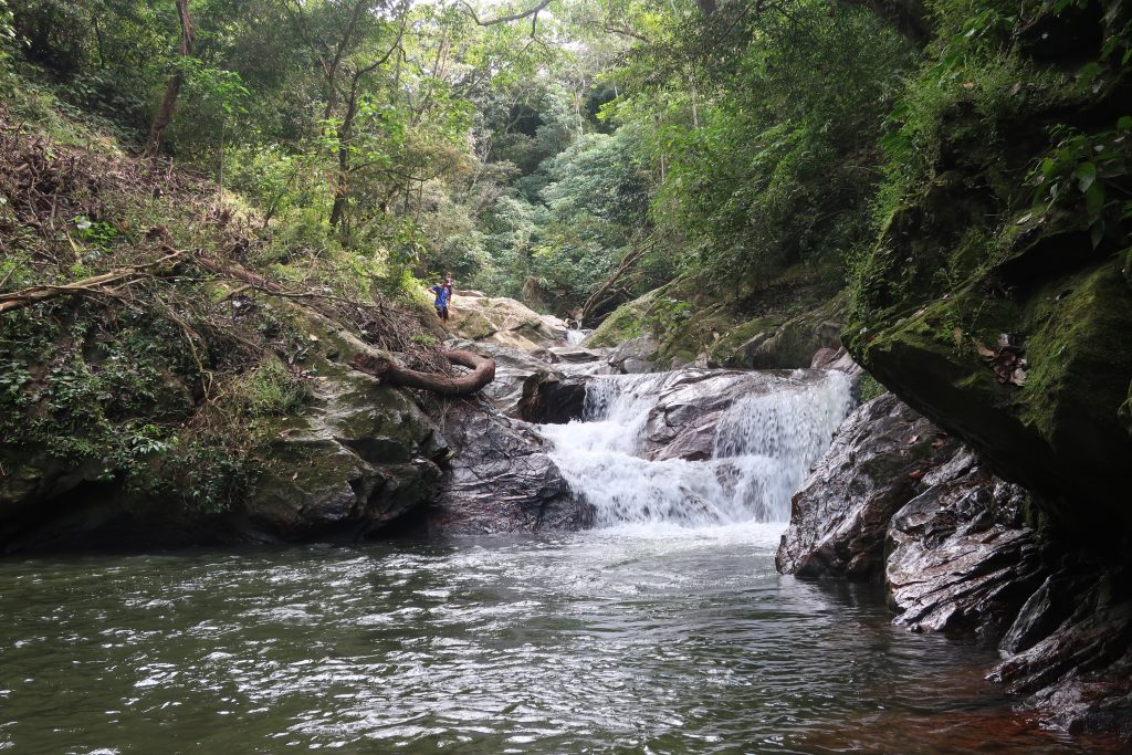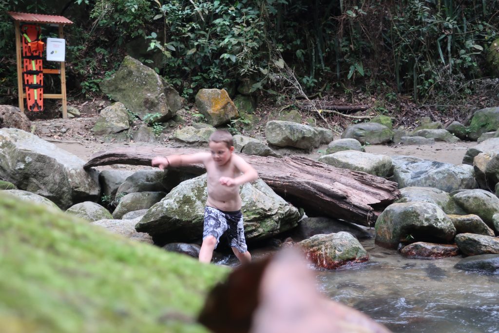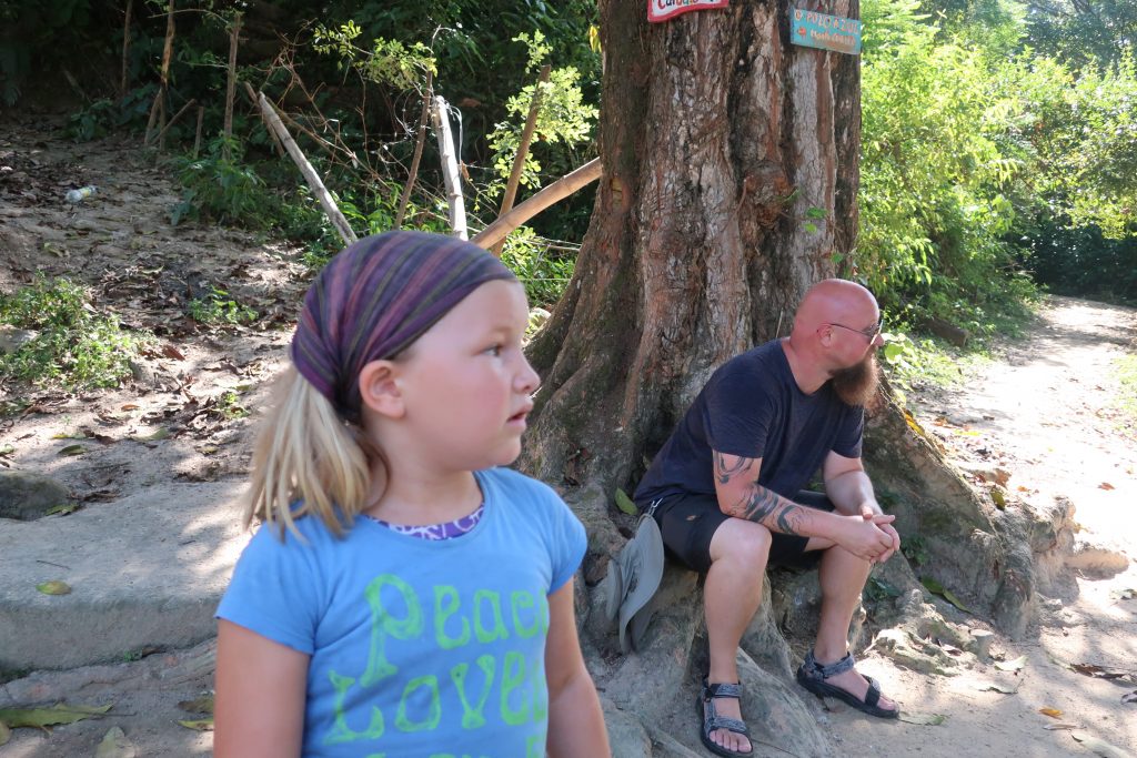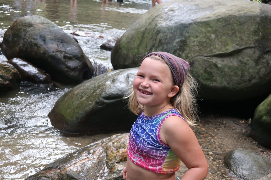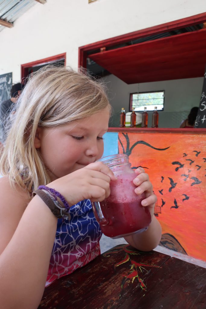De eerste dag begonnen we met een prachtige wandeling langs bospaadjes naar Pozo Azul, een mooie waterval waar we konden zwemmen. Op het bordje vlak bij ons huisje stond aangegeven dat het een wandeling was van 45 minuten. Ik denk dat de Colombianen snelwandelaars zijn, want wij deden er toch anderhalf uur over… Gelukkig konden we onderweg iets lekkers drinken en onze waterflessen bijvullen! De watervallen waren niet zo spectaculair als die in Thailand, maar een verfrissende duik deed wel deugd! Kiran amuseerde zich met van de ene rotsblok naar de andere te springen en zo de overkant te bereiken. De terugweg langs hetzelfde pad duidde 90 minuten aan, hoewel het nu bergaf was in plaats van bergop. De tijdsberekening bij de Colombianen zit precies nog niet helemaal goed, ofwel hebben ze de pijltjes gewoon omgewisseld…. Na de wandeling belanden we alweer in het zwembad. We hebben hier geen internet en eigenlijk maar goed, want zo maken we meer tijd om te spelen en te lezen. ‘s Avonds trekken we toch naar een restaurantje waar “free wifi” op de menukaart staat. Je weet nooit wat er in het thuisland ondertussen kan gebeurd zijn en zo kunnen we ook nog wat stoefen met mooie foto’s die we naar het thuisfront sturen.