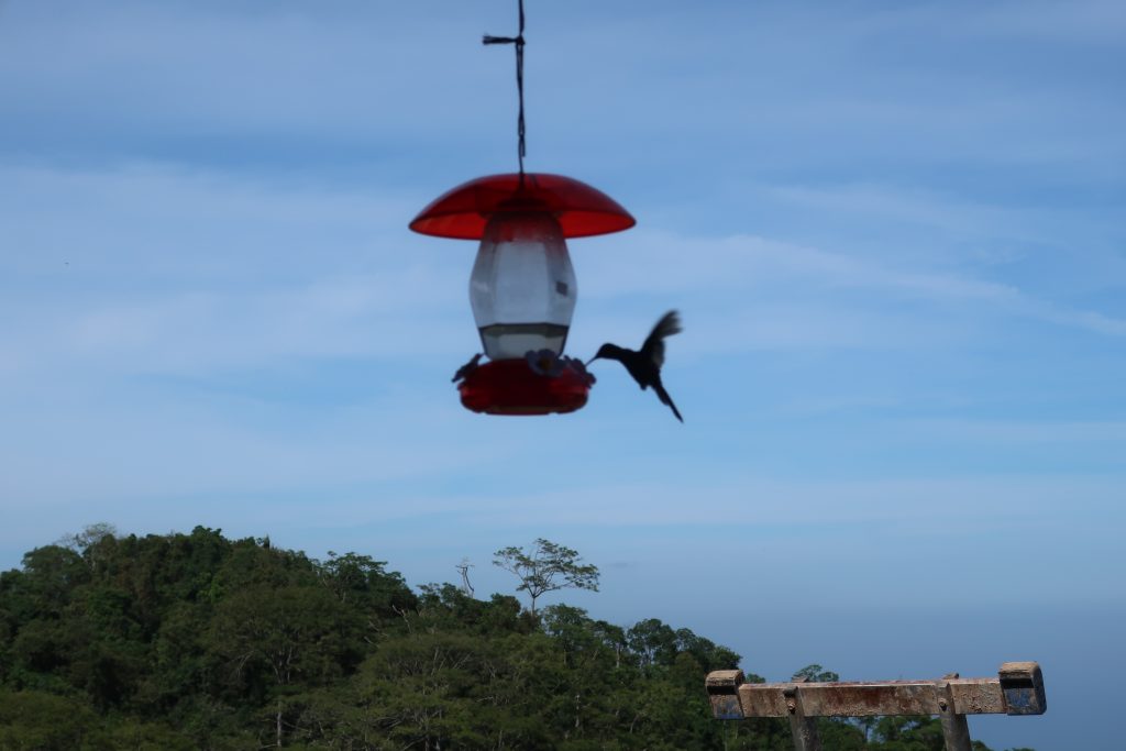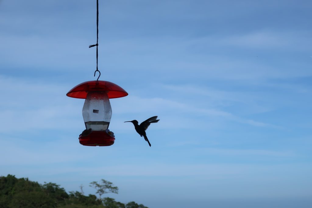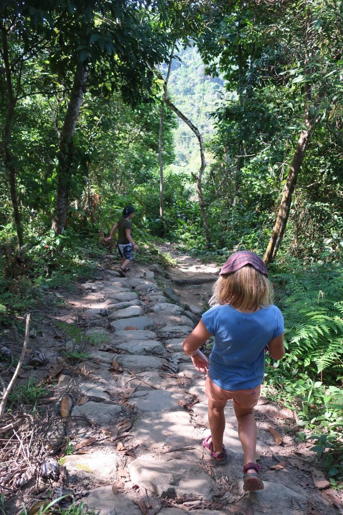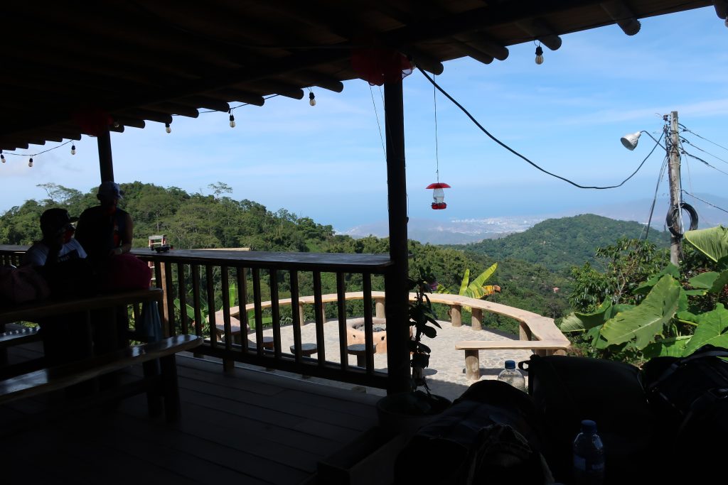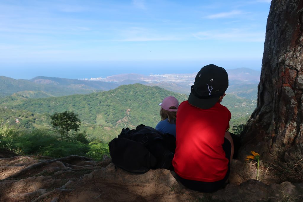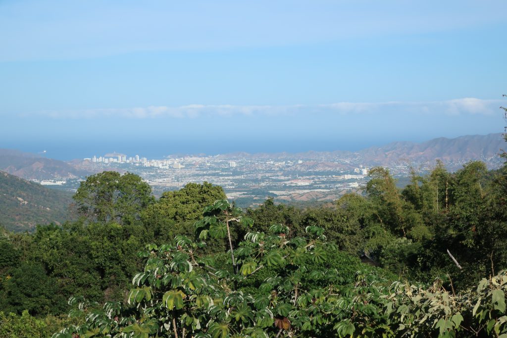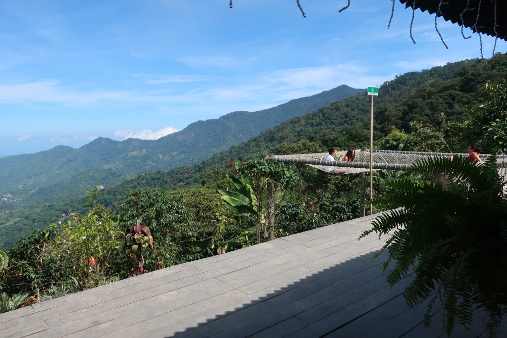De volgende dag pakken we het nog iets serieuzer aan: een wandeling naar Los Pinos, een mooi uitzichtpunt op zo’n 1300m hoogte. Eerlijk gezegd spelen we een beetje vals want we nemen een jeep naar boven. Zo moeten we niet opnieuw dezelfde weg nemen als gisteren en sparen we ook wat tijd uit. (Ze spreken immers over een wandeling van zes tot acht uur. Als dat even goed berekend is als gisteren, zijn we niet voor donker thuis.) We starten dus vanop het uitkijkpunt vanwaar we een prachtig zicht hebben op Santa Marta en Minca. De rest van de wandeling gaat nu alleen nog bergafwaarts. We passeren aan Casa Elemento, het beroemdste hostel in heel Zuid-Amerika omwille van zijn hangmat met spectaculair zicht op de vallei. We wandelen echter verder naar Siera Minca, een ander hostel dat het eerste volledig heeft nagebootst maar nieuwer en dus mooier is. Het is alweer een fameuze wandeling. We doen er toch een dikke vier uur over.