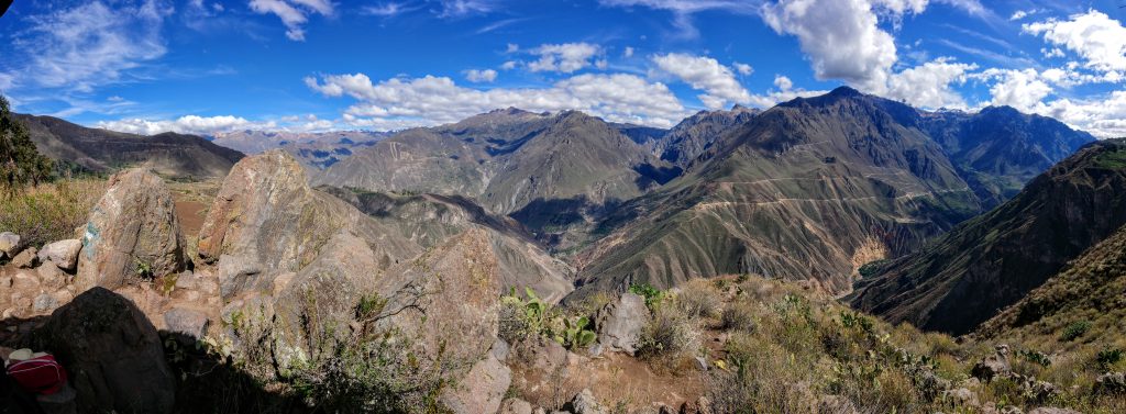 Vanuit Bogota vliegen we naar Lima. We slaan Lima momenteel over (we komen later dit jaar nog terug) en vliegen recht naar Arequipa. Vanuit Arequipa nemen we de bus richting Colca Canyon. De bus van 11u30 vertrok blijkbaar al om 11u en dus waren we net te laat… Dan maar wachten op de bus van 14u. Na een uurtje rijden staan we al stil. Geen wegenwerken deze keer, maar een heus accident. We hebben precies weeral eens pech… Anderhalf uur later kunnen we eindelijk verder. De busrit alleen al is magnifiek! Kijk maar naar de mooie landschappen die we passeren!
