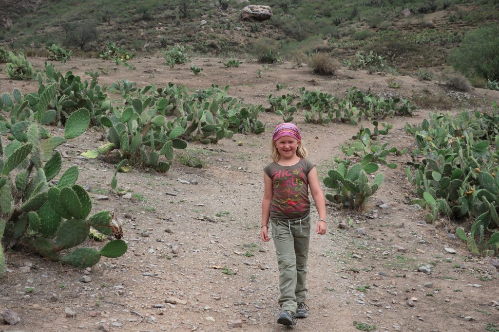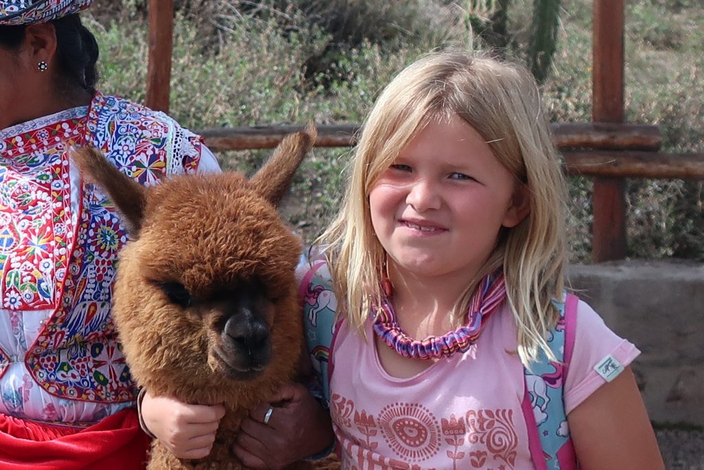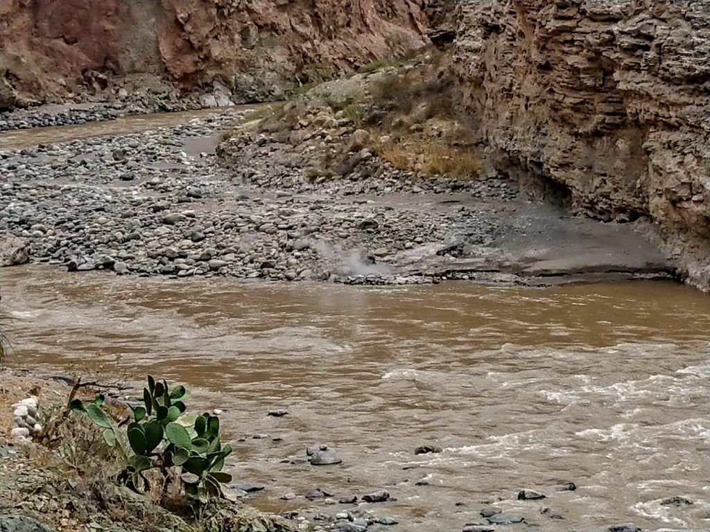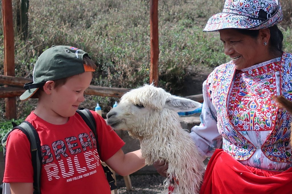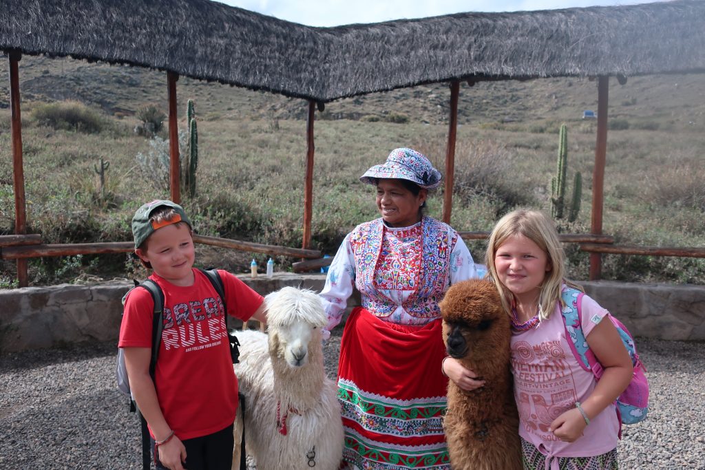 Dag twee staat de zwaarste wandeling op het programma. We moeten immers een berg oversteken om ‘s avonds opnieuw vlak bij de rivier aan te komen. Toen we de vorige namiddag oververmoeid en uitgedroogd in het dorpje Turuña aankwamen bij een kraampje met drinken vonden de plaatselijke twee vrouwtjes dat onze kinderen er nogal afgepeigerd uitzagen. (Ze zagen rood omdat we ons vergeten insmeren waren met zonnecrème.) Ze vonden het onvoorstelbaar dat wij die hele afdaling al met onze kinderen gedaan hadden. Ze informeerden ons dat er dagelijks om 8u30 een bus naar boven ging. Die kans lieten we niet liggen, en dus stonden we de volgende dag, na eerst een half uur klimmen, ruim op voorhand (we wilden die bus echt niet missen) aan de busstop. We lieten ons tot aan het uitkijkpunt “Mirador de Apacheta” brengen (dat scheelde toch alweer vier kilometer) en zetten vanaf daar onze wandeling verder naar Sangalle. De wandeling ging alweer bergafwaarts, maar gelukkig niet meer zo stijl als gisteren. Wanneer we nog maar net vertrokken zijn, vliegen twee condors ons voorbij. Prachtig! We zien de groene oase waar we ‘s avonds zullen verblijven al van ver liggen en we zien ook de stijle bergwand aan de overkant die we de volgende dag nog op moeten (maar dat zijn zorgen voor later). Onderweg komen we nog een vriendelijk mannetje tegen dat water, chips en koekjes verkoopt. Deze keer hebben we meer dan genoeg water mee, maar we kopen alvast enkele zakjes chips. Beneden zou alles veel duurder zijn volgens hem (en hij had groot gelijk, merken we achteraf). Gelukkig komen we opnieuw aan in een wondermooi hotel! De kamers zijn basic, de badkamer vies, maar er is een prachtige tuin met zwembad met waterval. Wat wil een mens nog meer na een lange dag wandelen? Bovendien blijkt er een hele nest jonge katjes te zijn. Het plezier voor de kids kan niet meer op!