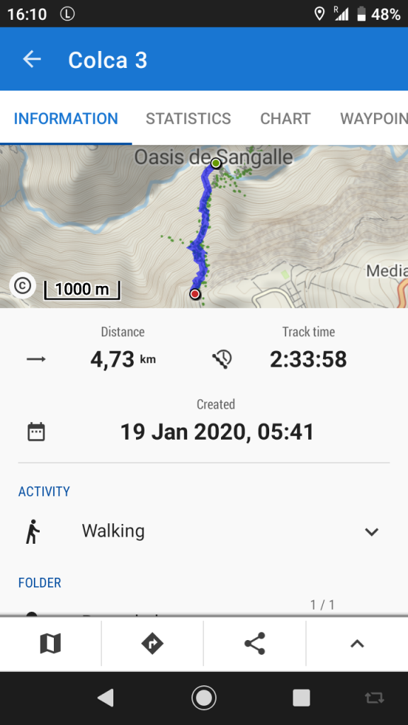 Dag 2: van Llahuar naar Sangalle, hier hebben we wel een stuk de bus genomen (de rechte lijn op de kaart/grafiek).