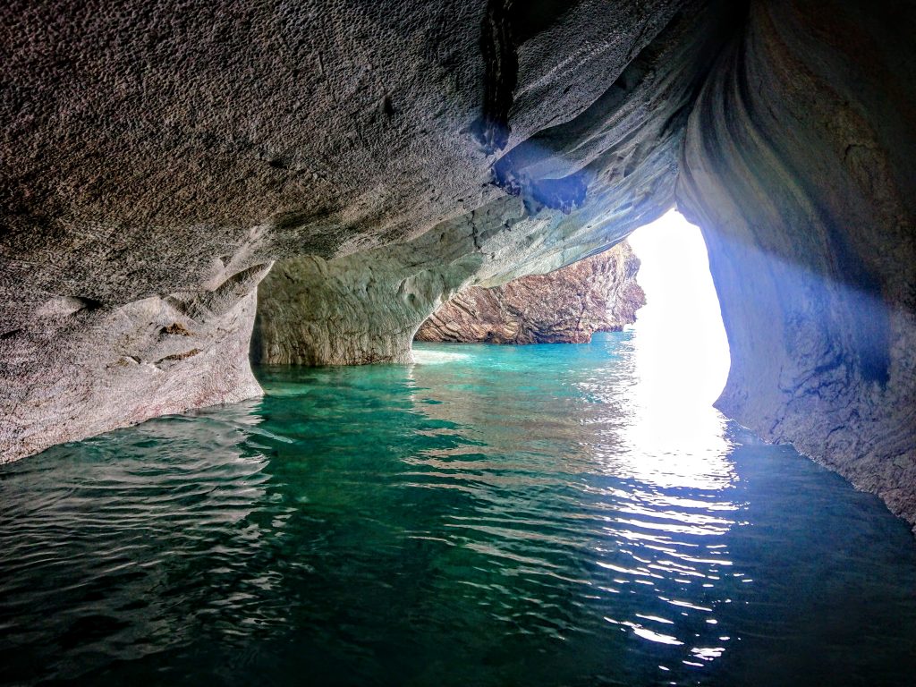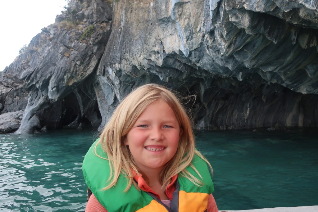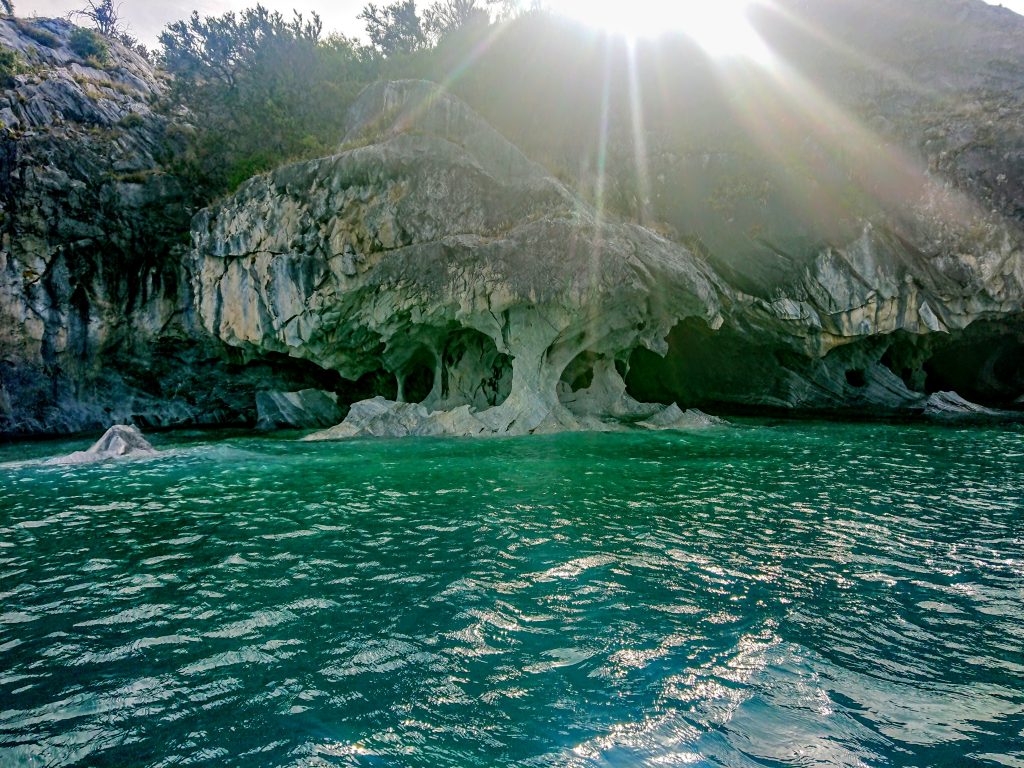 Voor we op zoek gaan naar een plaats om te overnachten, zoeken we eerst ons verder transport uit. Er is al een bus de volgende ochtend om 7 uur. Vroeg, maar dan zijn we ten minste tegen de middag op onze volgende bestemming. We vinden al snel een leuk hotelletje en begeven ons daarna naar de haven. De marble caves kan je immers enkel per boot bezoeken. Helaas is de haven momenteel gesloten. Of die nog open gaat vandaag is niet zeker. We moeten geduldig afwachten (niet makkelijk als je net vijf uur op een bus hebt gezeten en weet dat je morgenvroeg weer weg bent). We gaan ondertussen lunchen (het is al bijna vier uur) en denken na over een plan B (bustickets annuleren, hotel verlengen, andere bestemming laten vallen) terwijl we de vlag die aanduidt of de haven open is in de gaten houden. En ook na het eten blijven we nog even rondhangen en geduldig afwachten. Ineens zien we iemand aankomen met een Chileense vlag. We staan al binnen in het kantoortje om te boeken nog voor het kantoortje zelf door heeft dat de haven weer open is. Wat zijn we blij! Even later staan we gepakt met elk een reddingsvest klaar voor vertrek.