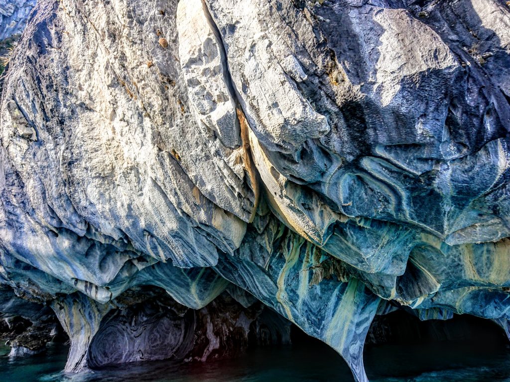 Ken je deze zegswijze? Misschien hadden we er gewoon te veel van verwacht, maar de marble caves waren echt een grote ontgoocheling. We hadden blinkend blauwe grotten verwacht waar we met een bootje gingen door varen, maar in plaats daarvan kregen we grijze stenen met een blauw tintje te zien van opzij. Zie hieronder onze foto die ik random van internet haalde naast onze eigen foto. Je zal vast wel begrijpen waarom we zo ontgoocheld waren.