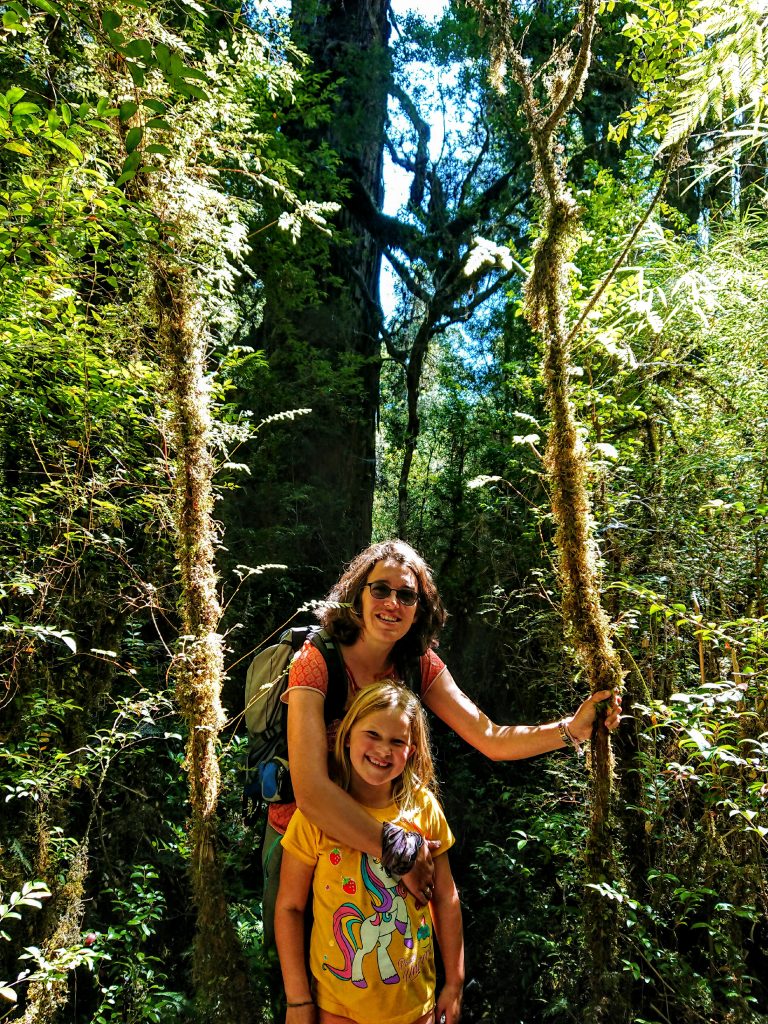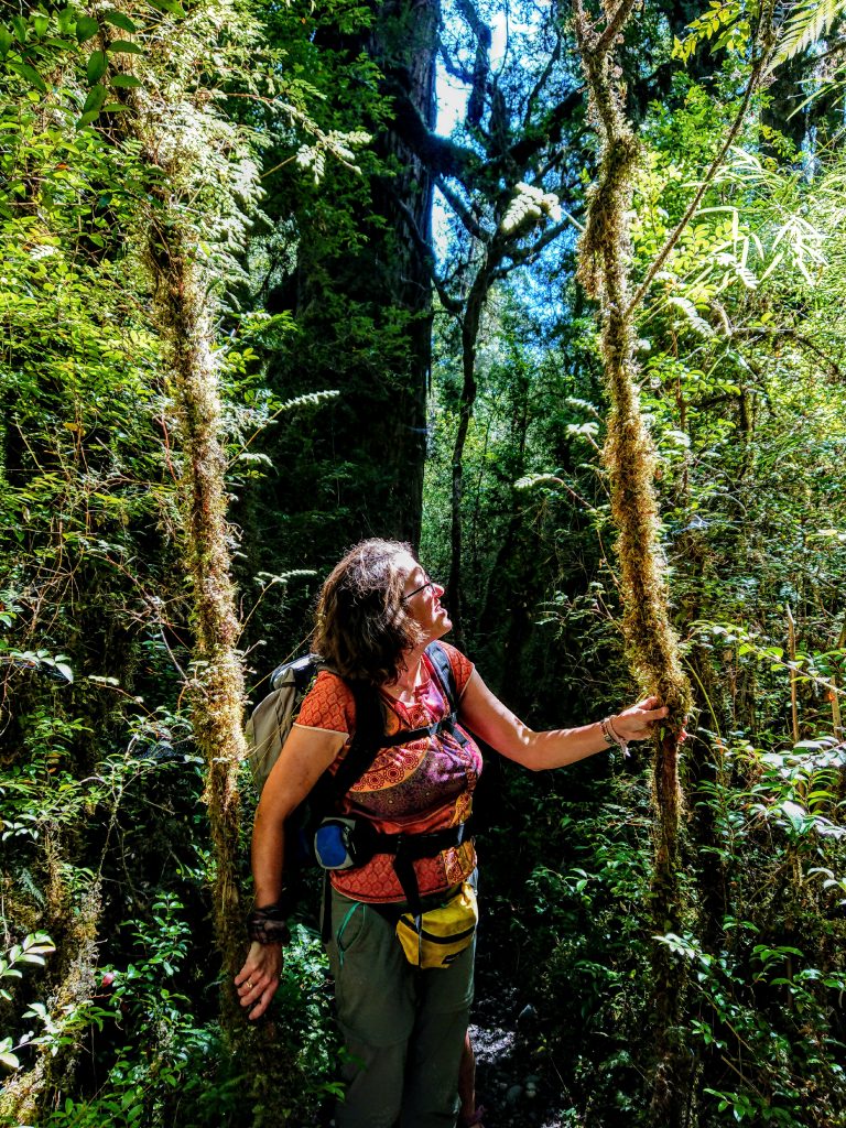 We kunnen blijkbaar kiezen uit twee wandelingen: ofwel klimmen we de vulkaan op ofwel maken we een wandeling door het bos van het nationaal park Pumalin. Aangezien de vulkaan droog, stijl en in volle zon is, kiezen we voor het laatste.
