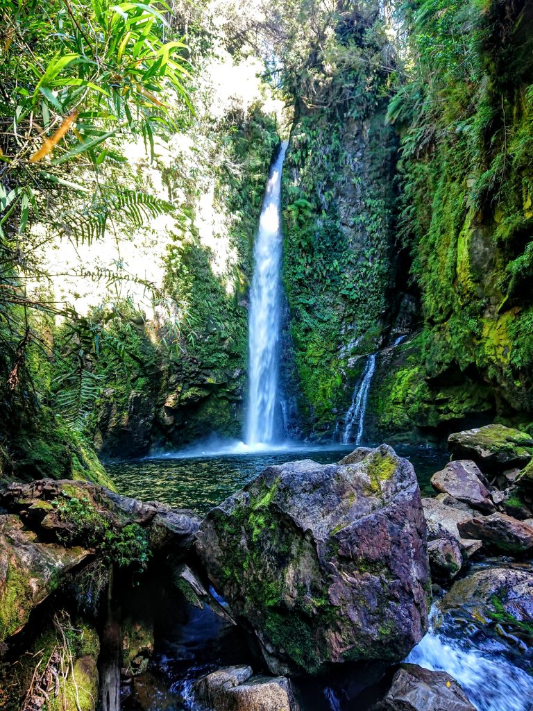 Het Pumalin park is een gematigd regenwoud en was tot voor kort eigendom van de gekende Amerikaan Douglas Tompkins, de oprichter van The North Face. Hierdoor is het heel goed uitgerust voor het publiek met mooie wandelpaden en toegankelijke campings. Tegelijkertijd is het hele park moeilijk toegankelijk, want de enige manier om er te geraken is via de weinig geasfalteerde Carretera Austral waardoor het eigenlijk heel weinig toeristen trekt. Het park en de wandeling zijn prachtig. In het woud staan echt oeroude (tot 4.000 jaar oude!) grote dikke Alerce bomen. Het leuke aan dit regenwoud is dat het er niet ondraaglijk heet en vochtig is zoals in Taman Negara. We zijn heel blij dat we op het onverwacht in het busje zijn gestapt! Vlak voor het einde nog een onverwachts pareltje langs deze route!