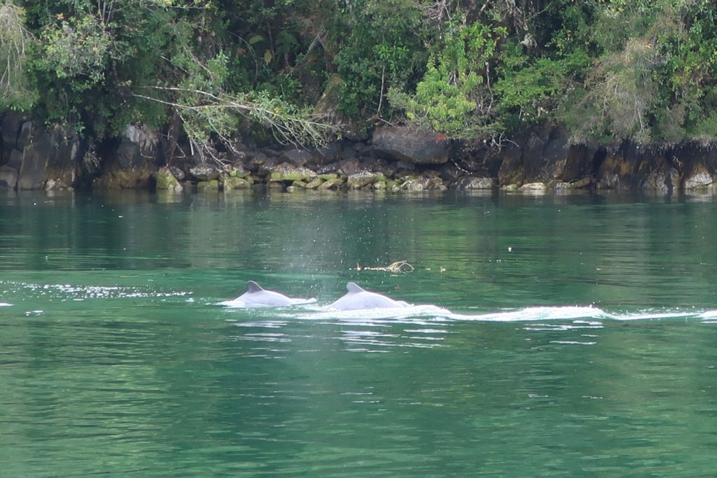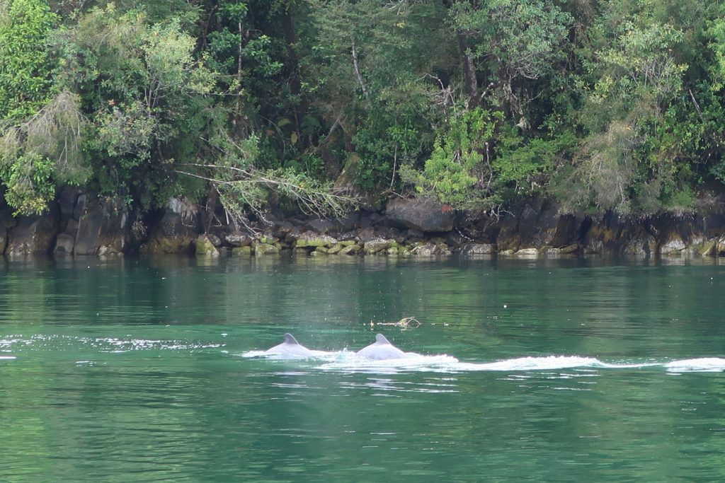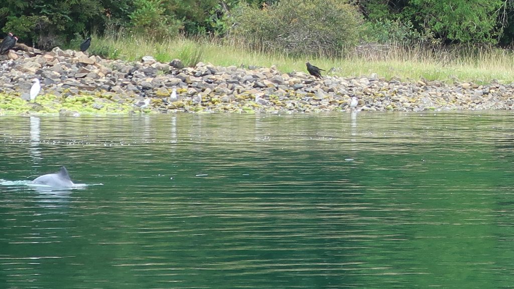 Na anderhalf uur varen zien we de eerste dolfijnen. Ze springen niet zo hoog in de lucht als in het dolfinarium in Brugge, maar ze in het wild zien zwemmen heeft ook wel iets. We zien bovendien ook nog een heleboel andere dieren.
