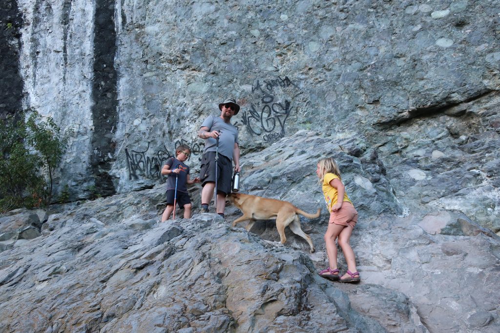 Onze volgende tussenstop is La Junta. Ook hier plannen we een mooie wandeling. Het wandelpad is zogezegd ‘in onderhoud’ maar daar trekken we ons niets van aan. We worden opnieuw begeleid door enkele honden. Enkele kilometers verder merken we waarom, we moeten bijna op handen en voeten onder de toegegroeide bomen en struiken kruipen. We keren dan maar op onze passen terug en wandelen naar een restaurantje enkele kilometers verder langs de rivier. Ook van hieruit hebben we een prachtig zicht en het eten is overheerlijk! Tika wil graag ook eens liften zoals we vele jonge mensen hier zien doen, helaas zonder succes…