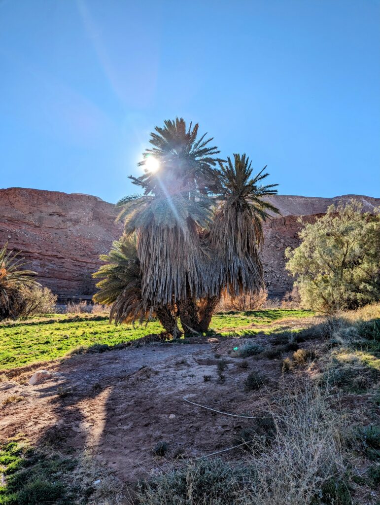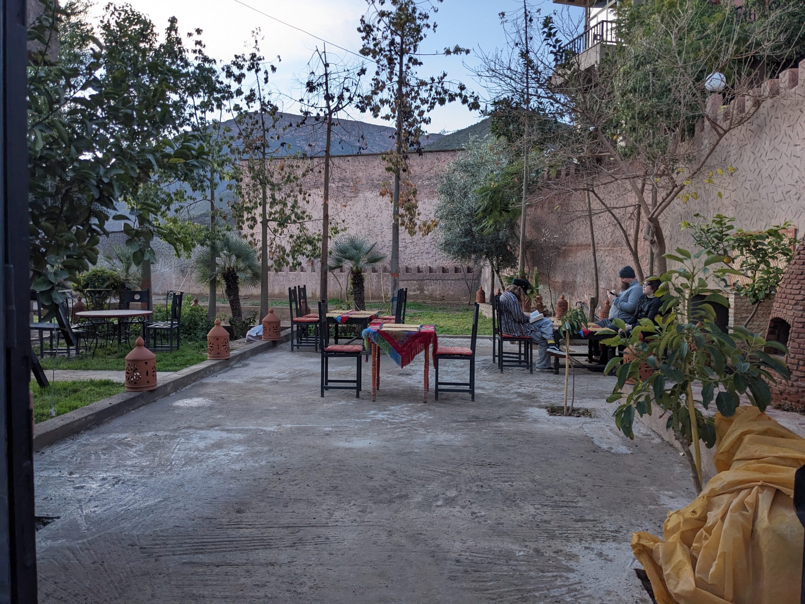 Na aankomst in Marrakesh hebben we direct onze huurauto opgepikt en zijn we naar de Ourika vallei gereden. Het plan was om daar in Sti Fadma te overnachten en ‘s anderdaags de watervallen wandeling te doen. Maar op een kleine 10 km van ons geboekte hotelletje kunnen we plots niet verder doordat de weg onder een aardverschuiving is terecht gekomen.