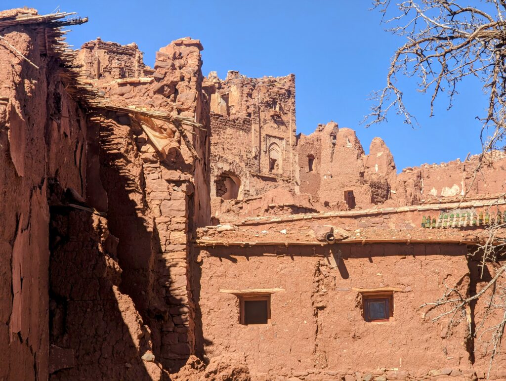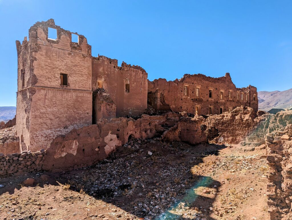 Daarna rijden we door de Ounila vallei waar we de route van de 1000 kasba’s volgen. Hier zien we op veel plaatsen de zware gevolgen van de recente aardbevingen.