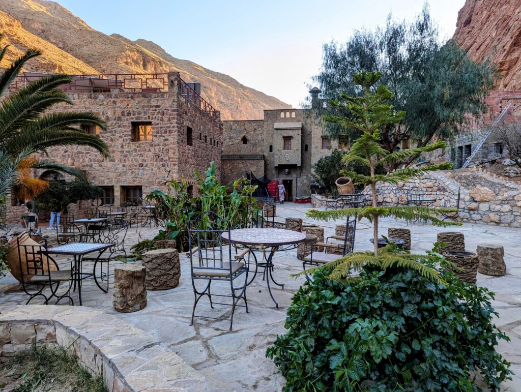 We rijden verder tot in de Todra kloof, waar we zeer afgelegen overnachten in Auberge Le Festival, een hotel midden in de kloof.