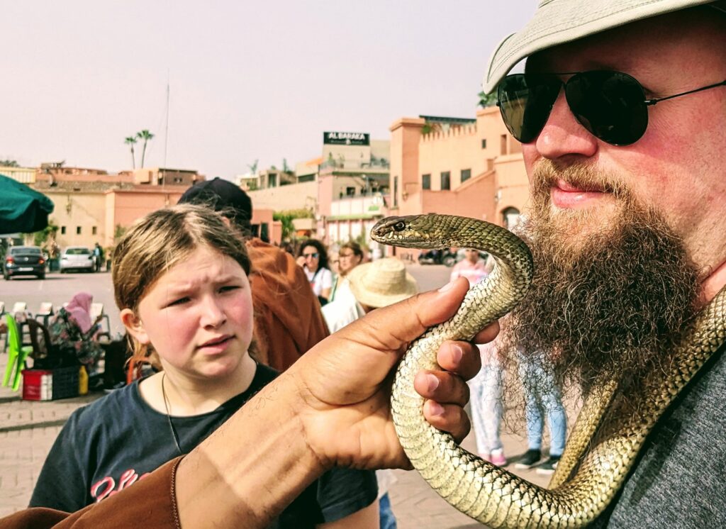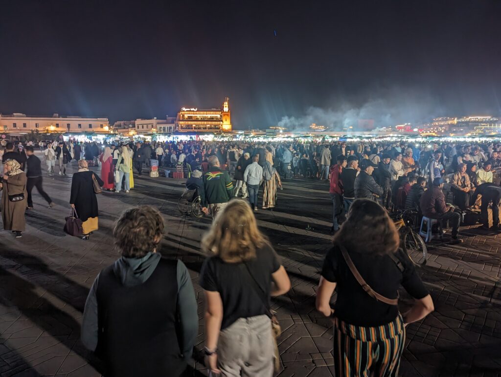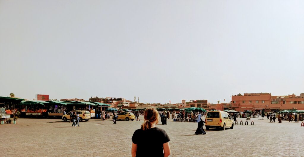 Het beruchte Jemaal el-Fnaa plein bezoeken.
